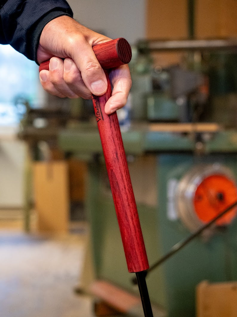 Omhyggeligt hånddrejet fra førsteklasses egetræ, behandlet med linolie for at sikre en glat og behagelig følelse.